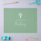 Papel verde-sábio com cruz floral branca para batismo ou batismo. Personalize com o nome do seu bebê e mude batismo para batizar, se preferir. Parte da Coleção Floral Cross Christening.