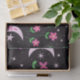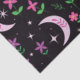 Este é um lindo padrão de lua de ventre com flores, folhas e estrelas cor-de-rosa sobre fundo escuro. É papel de tecido para excelente para qualquer ocasião