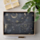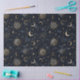 Envolva seus presentes em um pouco de magia cósmica com este padrão celestial dourado sobre azul-marinho. Apresentando luas crescentes, sóis radiantes e estrelas cintilantes, este design é perfeito para amantes de tarot, observadores de estrelas e sonhadores. Ideal para aniversários, celebrações espirituais ou qualquer admirador do céu noturno.