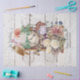 Trendy french trabalho de arte em fundo de madeira rústica com cadarço de árvore, aves e assim por diante.