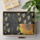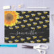 Decorados com abelhas-do-mato-amarelas e negras felizes e sorridentes e com um girassol de cor aquosa grande. Um fundo preto chic. Personalize e adicione um nome. O nome é escrito com um moderno roteiro de estilo, escrito à mão, com traços. Para manter as hastes, exclua apenas o nome da amostra, deixe os espaços ou emoji na frente e depois do nome.