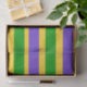 Mardi Gras Stripes Cores Papel tecidular Este papel corajoso, roxo, dourado e listrado verde é lindamente criado para ele ou para sua embalagem de presente. Perfeito para os eventos de Terça-feira gorda/Mardi Gras e aniversários. Verde é para a fé, ouro representa poder e roxo significa justiça. Por celeste@khoncepts.com