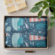 Adicione um toque náutico personalizado ao chá de fraldas ou festa de aniversário do seu filho com este adorável papel de tecido oceânico. O papel tecidular tem um padrão de baleia, polvo, veleiro, barco a vapor, submarino, água-viva e farol sobre fundo azul-marinho. O papel tecidular pode ser personalizado com o primeiro nome do seu filho. O papel tecidular acrescenta um excelente a um chá de fraldas, aniversário, Natal ou outro presente de feriado, especialmente para um jovem capitão que adora velejar!