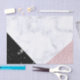 Design geométrica moderna com brilho de rosa dourado, mármore branco e preto.