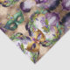 Este é um elegante e divertido papel de tecido com máscara Mardi Gras, penas e objetos decorativos sobre fundo de óleo de tinta. As cores utilizadas na design são as tradicionais cores Mardi Gras, roxo, verde e dourado. Este papel de tecidos é perfeito para embrulhar presentes por diversas ocasiões ou para usar em projetos de desvinculação.