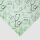 Possui um impressão de ferramentas cirúrgicas, luvas, seringas, bisturis, estetoscópios, etc.... Impressão está em preto num cirurgião verde desbotado e vintage. Algum zumbido para o cirurgião ou qualquer médico.