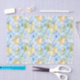 Mediterranean lemon floral design in a blue yellow white palette with tile-inspired details. Blending French and Italian charm, it adds a fresh, elegant touch to your gift wrapping for any occasion.