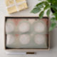 "Meio século Círculos Modernos Orgânicos Rodam Papel Tecido de Decoupage." Meio século de padrão repetido inspirado moderno com círculos orgânicos e elementos geométricos de diamante e uma paleta colorida de verde de menta, creme e ferrugem para um design de decoração relaxante e quente. Arte de uma artista e designer internacionalmente licenciada, Audrey Jeanne Roberts, copyright.