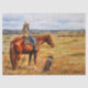 Uma jovem vaqueira espera que seu pai se recupere para que comecem a arredondá-lo. O seu verdadeiro cão de vaca senta-se ansiosamente a observar o rebanho à distância enquanto o cavalo aproveita esta oportunidade para deitar. Trabalho de arte realista criada de uma pintura original de óleo pelo artista equino e da fauna selvagem Crista S. Forest.