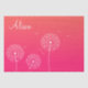 Transforme seus presentes em obras de arte com essas folhas de design de dandelion encantadoras. Dandélio delicado dança graciosamente através de um pano de fundo rosa gradiente, criando um ambiente feminino e caprichoso. Personalizáveis com o nome de sua escolha, essas folhas adicionam um toque pessoal a qualquer presente, fazer-as perfeitas para as almas femininas, florais e elegantes da sua vida. Quer seja para aniversários, casamentos, ou qualquer ocasião especial, esses lençóis envolventes evocam a essência da renovação do primavera e o encanto das flores florescentes. Aproveite a beleza da natureza e eleve sua experiência de doação com esses abstrato e designs florais bonitos.