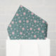 A contemporary geometric pattern featuring soft blush hexagons and dark charcoal triangles set against a cool mint background.