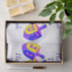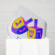 Escolha este lenço de papel feliz personalizado divertimento de Hanukkah coberto em Dreidels colorido para miúdos… e adultos demasiado! Quatro seções do texto azul escuro podem ser personalizadas adicionando seu nome à mensagem FELIZ de HANUKKAH - duas seções da luz - texto azul proclamam "Oy! Ao mundo". Qualquer um ajustou-se de modelos do texto pode igualmente ser apagado se você prefere. Meu Dreidels colorido super no roxo, profundamente azul, amarelo e rosa saturado em um fundo branco é uma adição do divertimento a seu festival do papel de embrulho das luzes.