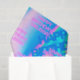 Nome personalizado ou Texto Holográfico Papel de tecido de Festa de aniversário moderno Y2K iridescente apresentando sua tipografia personalizada sobre fundo abstrato de arco-íris em cores néon brilhantes, design de muito canto.