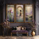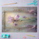 Uma única íris barbuda se eleva com majestade silenciosa neste painel impressionista romântico da coleção Delicate Moments. Pintada em tons suaves de lavanda, rosa e violeta contra um fundo verde-sage luminoso, a íris é emoldurada em uma moldura dourada lindamente ornamentada com trabalho de pergaminho delicado e detalhes rococó. Cachos de flores silvestres roxas macias florescem na base, adicionando profundidade e uma qualidade sonhadora de jardim de cottage.