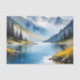 Linda pintura a óleo de montanhas com capa de neve e um lago