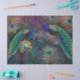 "Tecido de desacoplamento Dourado de Pavão Azul Roxo e Elegante para quebra ou desacoplamento de presentes." Uma vintage de estilo fantasioso e divertido e uma design de arte moderna com pavões elegantes em tons negros sobre um fundo lamacento e cor de pavão, modelado de fundo com penas pavão douradas, flores, pano de fundo da estrela cintilante. Na moda elegante para uma divertida e maximalista decoração de casa ou design de embrulho de presente. Arte projetada graficamente por uma artista e designer internacionalmente licenciada, Audrey Jeanne Roberts. Direitos autorais.