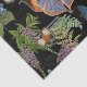 Design de estilo Cottagecore preto moderado (escalável) para desacoplamento, criado de desenhos botânicos de aquarela vintage e pinturas em um padrão de repetição de meia gota. Você pode torná-lo maior ou menor para ajustado das suas necessidades criativas. Flores de flor selvagem elegantes, em cores pastéis, de flores azuis, lavanda, roxas, rosa e brancas, com borboletas lindas, libélulas e folha de folhagem, pop de fundo preto escuro e rico. Escrita manual antiga, efemera, adiciona um toque antigo. Criada por artista e designer internacionalmente licenciado, Audrey Jeanne Roberts ©.