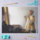 Johannes Vermeer (outubro de 1632 - dezembro de 1675), no original holandês Jan Vermeer van Delft, era um pintor holandês do período barroco que se especializava em cenas internas da vida da classe média. Durante sua vida, ele foi um pintor de gênero provincial moderadamente bem-sucedido, reconhecido em Delft e na Haia. Mesmo assim, produziu relativamente poucas pinturas e, evidentemente, não era rico, deixando sua esposa e filhos em dívida com sua morte. Vermeer trabalhava devagar e com cuidado com excelentes, e frequentemente usava pigmentos muito caros. Ele é particularmente conhecido por seu tratamento e uso intensos de luz em seu trabalho. "Quase todas as suas pinturas", escreveu Hans Koningsberger, "são aparentemente colocadas em duas salas pequenas na sua casa em Delft; mostram os mesmos móveis e decorações em vários arranjos e retratam frequentemente as mesmas pessoas, na sua maioria mulheres." Sua modesta celebridade deu lugar à obscuridade após sua morte. Mal foi mencionado no importante livro de fontes de Arnold Houbraken na pintura holandesa do século 17 (Grande Teatro de Pintores e Artistas Neerlandeses) e foi, assim, omitido de pesquisas subsequentes de arte holandesa por quase dois séculos. No século 19, Vermeer foi redescoberto por Gustav Friedrich Waagen e Théophile Thoré-Bürger, que publicaram um ensaio que lhe atribuía 66 fotos, embora hoje apenas 34 sejam universalmente atribuídas a ele. Desde então, a reputação de Vermeer cresceu, e agora é reconhecido como um dos maiores pintores da Era do Ouro holandesa. Citação: Wikipedia