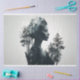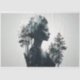 “Ecos Etéreos” Esta obra de arte digital apresenta a silhueta superexposta do perfil de uma mulher, perfeitamente integrada a uma cena tranquila de floresta. A composição cria uma atmosfera etérea, borrando as linhas entre a humanidade e o mundo natural. Os padrões intrincados dentro da silhueta, possivelmente representando flores ou corpos celestes, destacam a conexão harmoniosa entre os seres humanos e o meio ambiente.