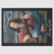 Lindo guitarra.. Linda menina tocando violão clássico.Pintura a óleo vibrante em cores vermelha, azul, preta e marrom na canvas .1975 por Alessandro Lumini.