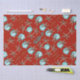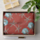 Papel vermelho, papel de tecido natalino com design de estrelas e ornamentos. As estrelas marrons e os ornamentos azuis aqua fazem um padrão de Natal tropical divertido e combina com o nosso papel de embrulho.