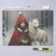 Numa floresta encantada, nevada e silenciosa, o Chapeuzinho Vermelho caminha lado a lado com um lobo branco majestoso. Seu capuz vermelho, adornada com um pom-pom de Natal macio, se destaca entre os ramos da congelação, evocando um espírito festivo mágico. Já não rivais, Red e o lobo se movem em perfeita harmonia, um símbolo de uma amizade inesperada que desafia os velhos contos. Perfeito para seus projetos de dissociação com um conto de fadas e tema de Natal, esta design combina a elegância da neve com o calor da época de festas, capturando um momento de paz e companhia entre natureza e lenda.