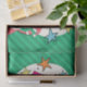 O design apresenta um Papai Noel fofo "Ho, Ho, Ho" em um fundo verde em diagonal listrado.