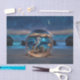 Uma imagem fantástica de um cavalo marinho e estrela do mar, no seu ambiente subaquático, numa orbe numa bela praia. As estrelas e a lua estão fora. Adicione interesse ao seu empacotamento!