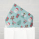 Aqui temos um lindíssimo lenço que apresenta Papais noeis, um anjo, árvore de Natal, presente, gengibre e canas doces num fundo verde de menta. Este documento está disponível em vários tamanhos e corresponde a outros papéis de embalagem, papéis de tecidos, sacos de presentes e um cartão de saudação. Isso certamente fará uma adição perfeita aos seus presentes nesta temporada de festas.