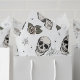 Este divertido papel gótico feminino é desenhado à mão a tinta preta por Nathalie Portet, com crânios brancos pequenos e rosas cor-de-rosa e creme e teias de aranha contra um elegante fundo branco.