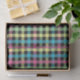 Padrão Gingham com rosa, verde, azul, amarelo e preto.