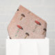 Um padrão de cogumelos vermelhos e castanhos sobre um fundo de jornal alemão. Projetos de dissociação perfeitos, embrulhamento de presentes ou raspagem.