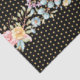 Fundo preto e ouro com banda floral cria um aspecto festivo, mas elegante