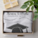 Crie o seu próprio papel de tecidos personalizado de graduação, incluindo o nome do formando, o ano e o nome da escola. Design apresenta um boné de formatura preto com texto preto.