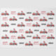 Uma bela ilustração de um caminhão trator de Natal vermelho vestindo um chapéu de Papai Noel e decorado em luzes de Natal rebocando um vagão cheio de presentes de Natal. Perfeito para rapazes e raparigas que adoram tratores, caminhões, maquinaria pesada, agricultura ou que adoram brincar com caminhões de brinquedos. Um papel de tecido de Natal ideal para entusiastas de caminhões tratores grandes ou pequenos, raparigas ou rapazes. Personalize o nome e torne-o seu.