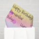 Personalizável com o nome do destinatário - Papel de tecido de aniversário feliz, de arte colorida e girada, com cor gradiente de fundo - romas, pinks e verdes.