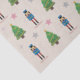 Um papel de tecidos de Natal com uma ilustração de um padrão de Nutcracker, Árvores de Natal e algumas estrelas sobre um fundo castanho claro. Perfeito para decorar seus presentes de Natal!