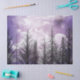 Esta design única mostra uma floresta de pinheiros de matiz roxa no inverno com um cheio de nuvens no céu. Maravilhoso para a arte da dissociação, artesanatos de papel ou plástico de presentes.