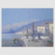 A pintura lindo das belas artes do vintage da costa de Capri, Italia, com as flores vermelhas e azuis, as construções brancas e oceano e céu azuis azuis, está neste lenço de papel. A imagem é dominio público devido aos direitos reservados expirados.