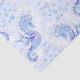 Este papel tecidular doce apresenta um tema oceânico subaquático com cavalos marinhos queridos em azul e lavanda. Perfeito para chás de fraldas e aniversários de criança.