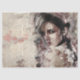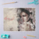 Um retrato grandioso de uma mulher com elementos de escrita.