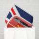 Este lenço de papel Londres-temático especial caracteriza um autocarro de dois andares vermelho do vintage colocado sobre a bandeira britânica. Substitua o texto no ônibus com seus próprios e faça seus presentes verdadeiramente originais e pessoais.