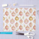 Veja o prazer que traz aos seus amigos e família para receber seus presentes e pacotes vestidos com este belo design de ornamentos cor-de-rosa e ouro em um papel de tecido. O adorável design é um padrão de aquarela vintage, e é tão bom olhar para ele.