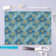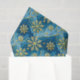 Um campo de flocos de neve ouro flutua sobre um rico fundo abstrato azul neste encantador papel de embrulho de inverno