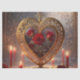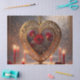 Este belo Papel Tecido apresenta um coração vitoriano ouro decorado com rosas vermelhas e velas sobre fundo romântico em cores suaves. Excelente para os seus artesanatos ou como embrulho de presente!