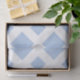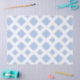 Um padrão na moda, geométrico de grandes e pequenos diamantes azuis-claros sobre um fundo branco. O branco forma uma trava que separa as formas de diamante azul do bebê. Imagem criada digitalmente. Copyright © Claire E. Skinner, Todos os direitos reservados.
