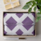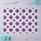 Um padrão ousado e geométrico de grandes e pequenos diamantes roxos sobre fundo branco. O branco forma uma trinca que separa as formas reais de diamante roxo. Imagem criada digitalmente. Copyright ©Claire E. Skinner, Todos os direitos reservados.