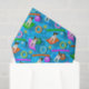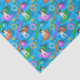 Este papel colorido de piscina para cães para amantes de Parson / Jack Russell Terrier apresenta um padrão de quatro diferentes JRTs / PRTs com marcas variadas de cabeça/corpo castanho e preto e uma charmosa cabeça de cão inclinada sobre os seus colorido tapetes flutuantes azuis, cor-de-rosa, laranja e piscina com uma bola de tênis numa clara piscina azul, rodeada e bolas e brinquedos para mastigar flutuantes em forma de estrela amarela - Parson / Jack Russell piscina party © katz_d_zynes 2021