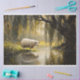 Folha de tecido graciosa que mostra uma pintura serena de ovelhas descansando sob uma árvore salgueira, perfeita para trazer um charme pacífico e pastoral para artesanatos, embrulhamento de presentes e projetos criativos.