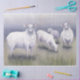Ovinos com aquarelas no campo. Esta adorável trabalho de arte foi pintada por um de nossos artistas talentosos e não é produzida pela IA.